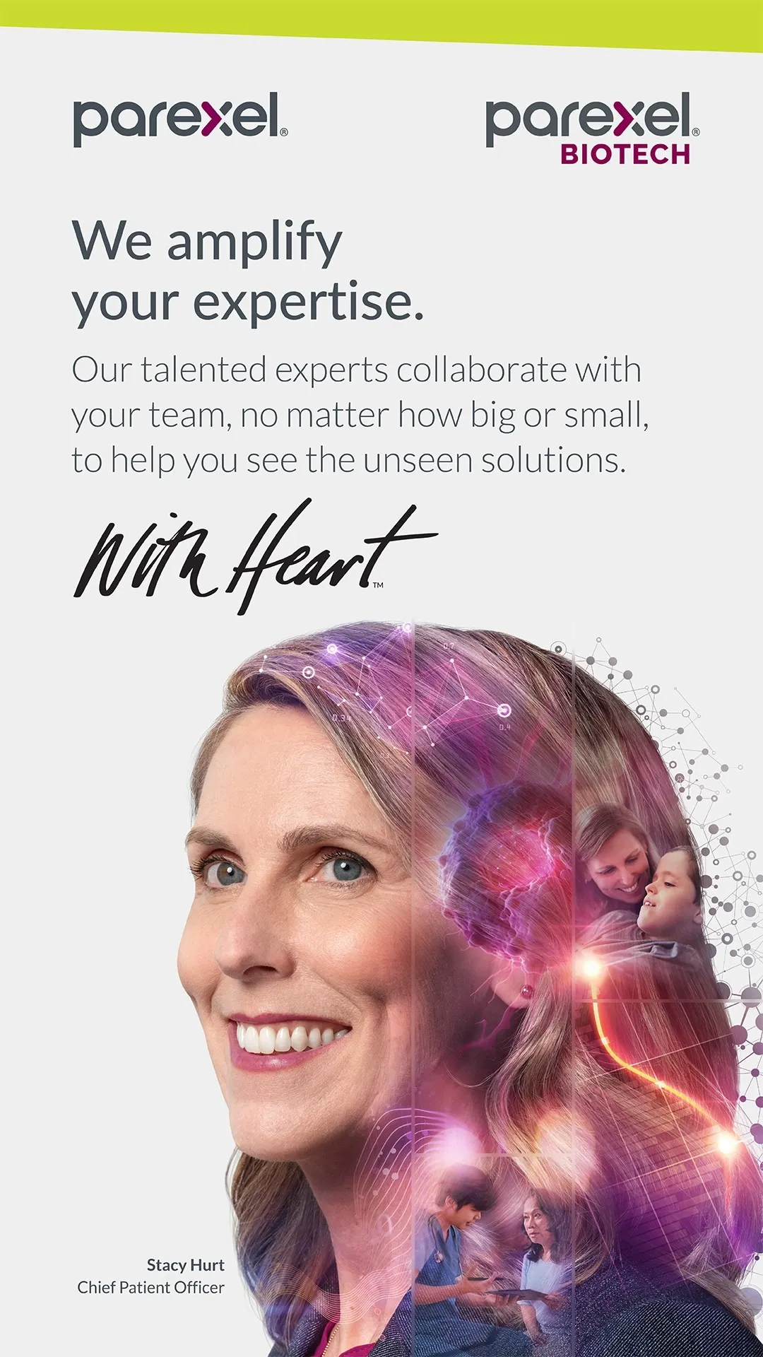 Our depth of industry knowledge and strong track record gained over the past 40 years is moving the industry forward and advancing clinical research in healthcare’s most complex areas, while our innovation ecosystem offers quality solutions to make every phase of the clinical trial process more efficient. With the people, insight and focus on operational excellence, we work With Heart™ every day to treat patients with dignity and continuously learn from their experiences, so every trial makes a difference. This approach continues to earn us recognition industrywide, with Parexel being named “Best Contract Research Organization” in November 2023 by an independent panel for Citeline, “Top CRO to Work With” by investigative sites worldwide in the 2023 WCG CenterWatch Global Site Relationship Benchmark Survey and recipient of the 2023 Society for Clinical Research Sites (SCRS) Eagle Award for advancing the clinical research profession through strong site partnerships.